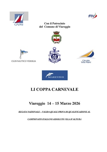 Sabato 14 e domenica 15 marzo il Club Nautico Versilia aprirà ufficialmente la sua stagione agonistica 2026 con la 51° Coppa Carnevale -Trofeo città di Viareggio -regata nazionale valida quale prova di qualificazione al Campionato Italiano assoluto vela d’altura- e con il Trofeo del Carnevale di Viareggio -regata sociale riservata ad Orc Gran Crociera- Rating FIV-. Le regate si svolgeranno nell’area antistante il porto di Viareggio. Il Bando di Regata e il programma dettagliato sono pubblicati e scaricabili sulla notice board di Racing Rules a...